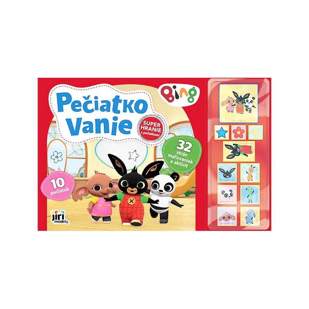 Zošity na pečiatkovanie Bing, obsahujú 64 strán maľovaniek a aktivít s pečiatkami, 10 penových pečiatok a farebnú podušku. Majú rozmery 290 X 200 mm. Vhodné pre deti vo veku 3+ rokov.Dodatočné parametre
